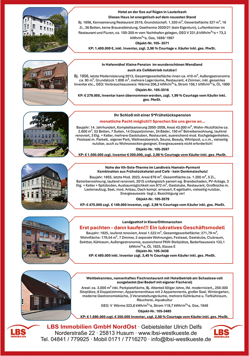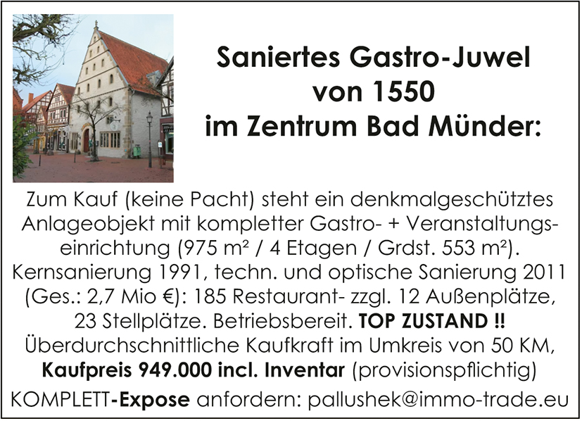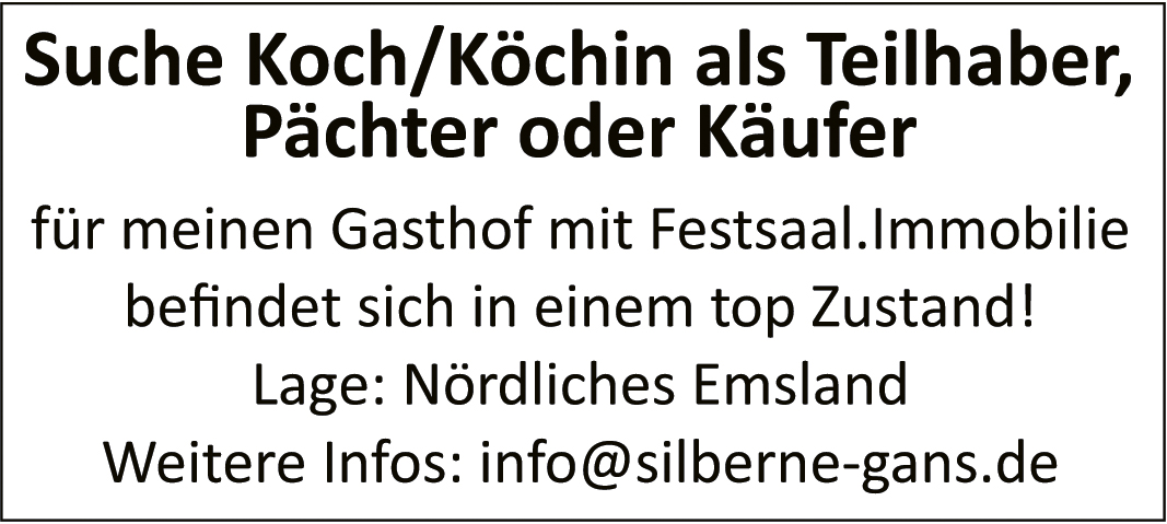 Hier finden Sie die Angebote wie Verkäufe, Vermietungen, Verpachtungen, Vermittlungen und Gelegenheitenaus unseren Fachzeitschriften für die Gastronomie und Hotellerie