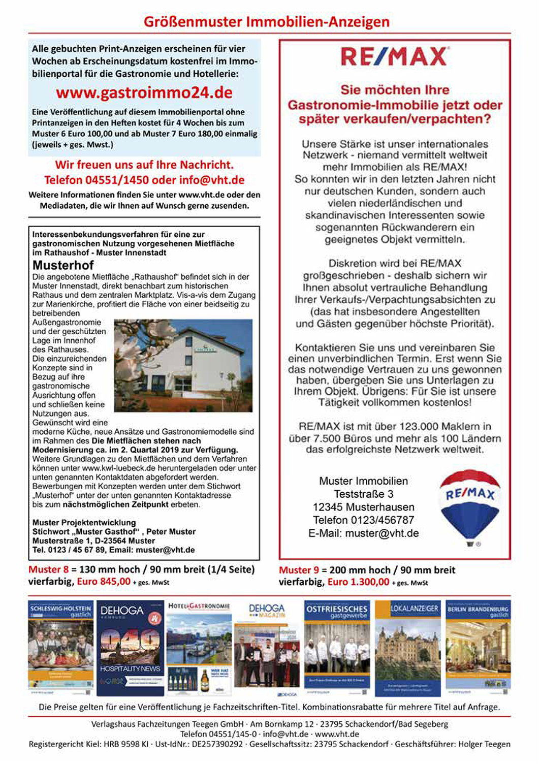Verbreitung als Einhefter im LOKAL-anzeiger Mecklenburg-Vorpommern und in der Fachzeitschrift Berlin-Brandenburg gastlich, die Verbreitung im östlichen Schleswig-Holstein und als Auslage auf der Messe sorgen für einen großen Verbreitungsgrad.